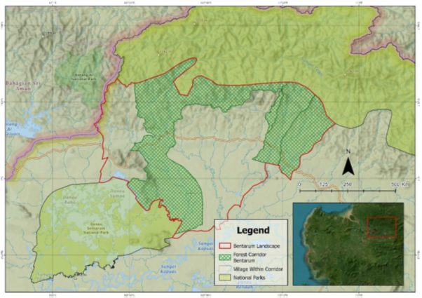 The Bentarum landscape of Kapuas Hulu, West Kalimantan, Indonesia encompasses the mountainous terrain of Betung Kerihun National Park in the north and the seasonal lake ecosystem of Danau Sentarum National Park in the south. In between is a 315,000-hectare unprotected forested corridor, home to 14,295 people, predominantly Indigenous Dayak Iban and Dayak Tamanbaloh.